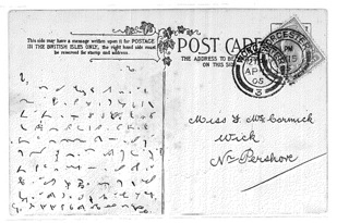 I think these postcards were written in Pitman's Centenary and I've nearly worked out what they say ...